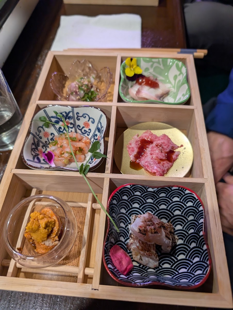 My wife and I enjoyed this. Some fresh spins on some classic Maki sushi! The vegetable tempura was