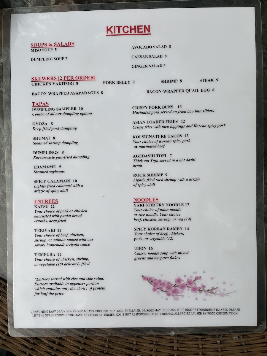 Guests can enjoy a range of flavors from fresh sashimi and sushi rolls to comforting noodle soups like udon and ramen. Light bites such as crispy pork buns, gyoza, and vegetable tempura pair well with shareable skewers, making the menu inviting for both solo meals and group gatherings. The inclusion of Asian fries and signature items like the salsa de camaron roll adds a playful touch to the experience.